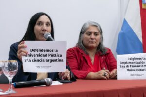 En el Día de la Ciencia, el Investigador y la Investigadora, que se conmemora cada 10 de abril, Boeykens aludió a los carteles alusivos a la defensa la Universidad Pública y la Ciencia Argentina que estaban dispuestos sobre el escenario del Auditorio Rodolfo Walsh. “Estamos atravesando momentos muy difíciles en todo el sistema público universitario, científico y tecnológico en nuestro país. La depreciación de nuestros salarios docentes y nodocentes en el orden del 50% y el insuficiente presupuesto para el funcionamiento de nuestras universidades, para investigación, extensión y para becas estudiantiles, llevan más de dos años y han hecho que nos tengamos que movilizar y visibilizar nuestro reclamo de distintas maneras en el espacio público, con creatividad y persistencia, para exigir el cumplimiento de la vigente Ley de Financiamiento Universitario que a pesar que aprobó el Congreso y que el 30 de marzo ratificó la Sala III de la Cámara en lo Contencioso Administrativo Federal, el Poder Ejecutivo sigue incumpliendo”, expresó.