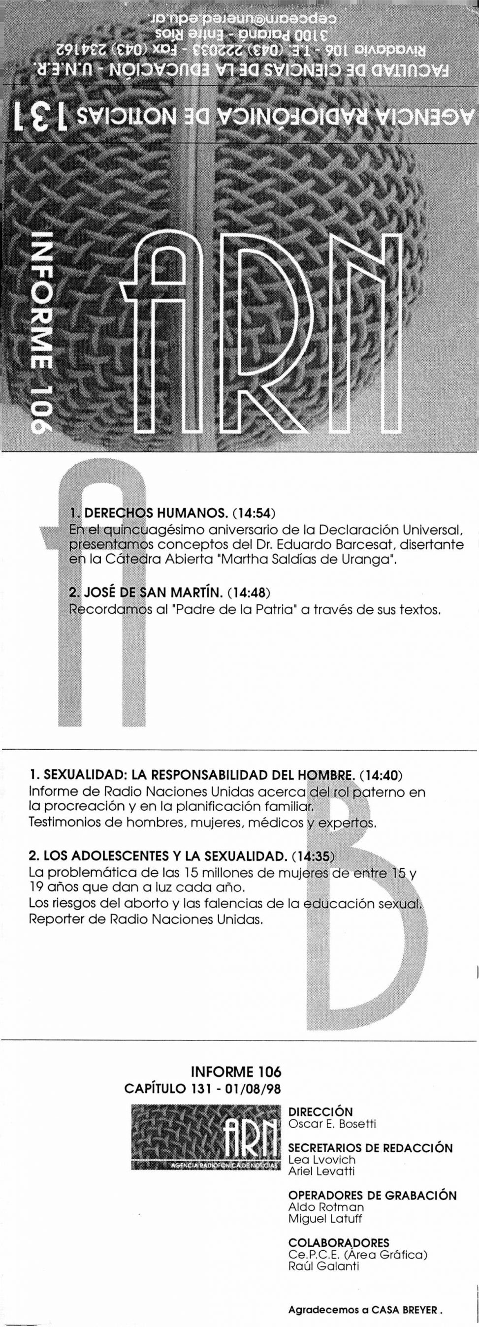 Capítulo 131 Derechos Humanos José de San Martín Sexualidad: la responsabilidad del hombre Los adolescentes y la sexualidad 9 septiembre, 2019 en 1998 Cultura y Sociedad Derechos Humanos Historia ← Entrada anterior Entrada siguiente →