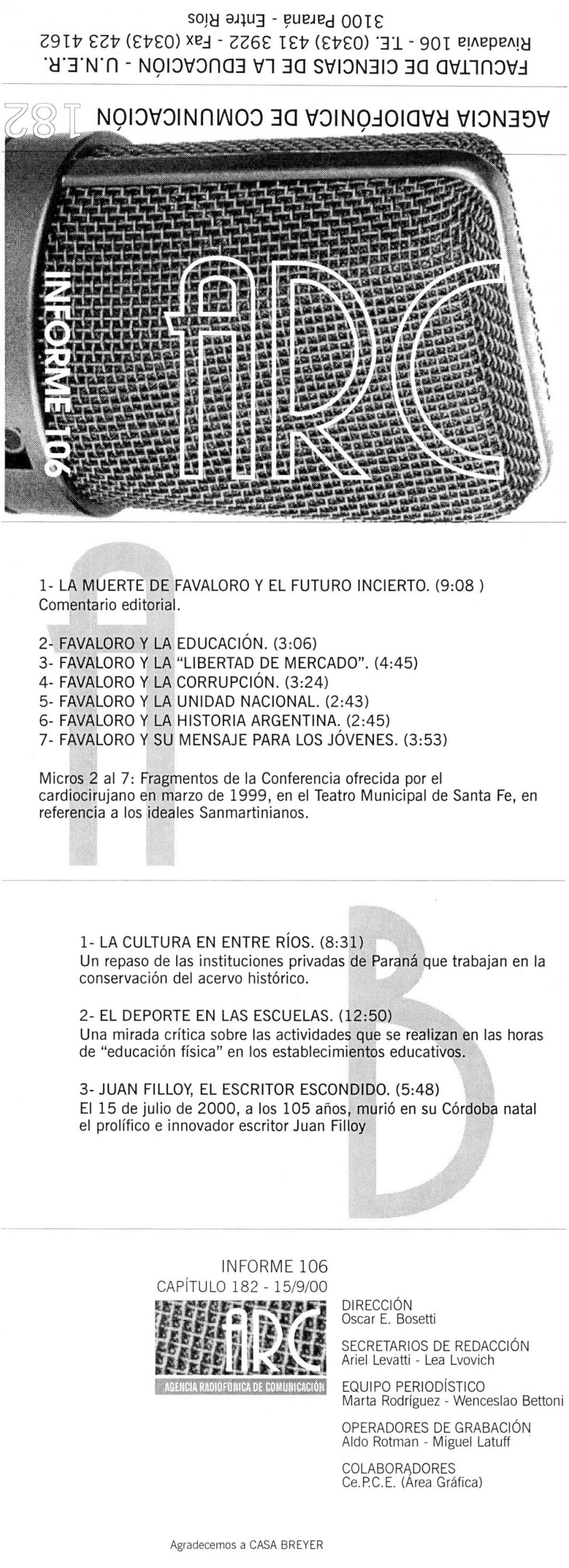 Micros 2 al 7: Fragmentos de la Conferencia ofrecida por el cardiocirujano en marzo de 1999, en el Teatro Municipal de Santa Fe, en referencia a los ideales Sanmartinianos.