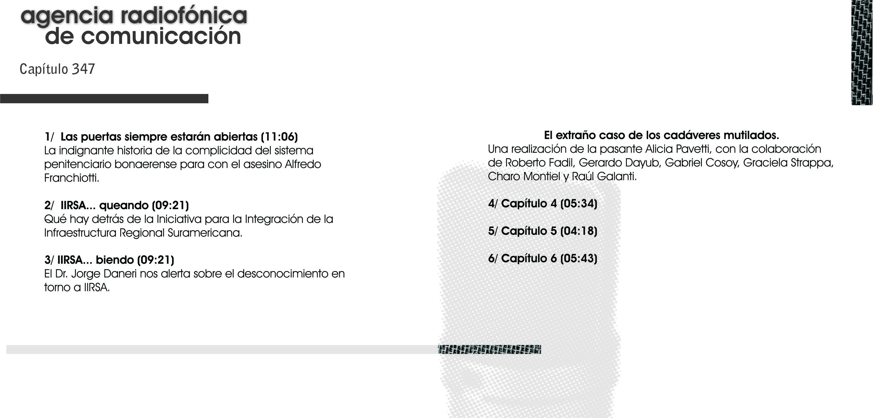 Una realización de la pasante Alicia Pavetti, con la colaboración de Roberto Fadil, Gerardo Dayub, Gabriel Cosoy, Graciela Strappa, Charo Montiel y Raúl Galanti.