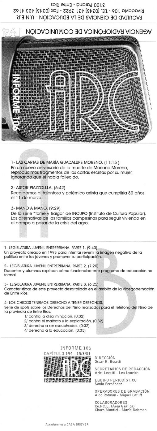 Las cartas de María Guadalupe Moreno Astor Piazzolla Mano a mano Legislatura juvenil entrerriana. Parte I Legislatura juvenil entrerriana. Parte II Legislatura juvenil entrerriana. Parte III Los chicos…