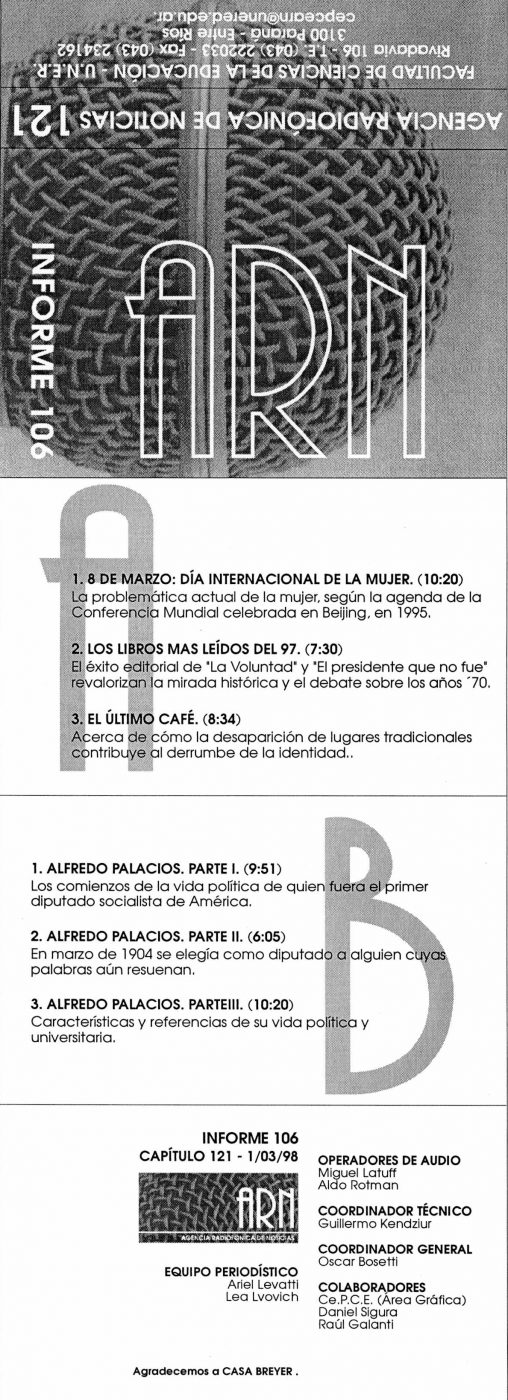 8 de marzo: Día Internacional de la Mujer Los libros más leídos del 97 El último café Alfredo Palacios. Parte I Alfredo Palacios. Parte II Alfredo Palacios. Parte…