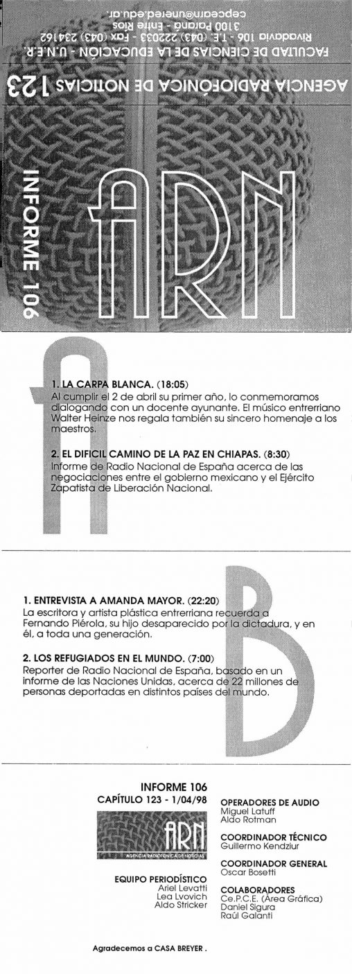 Las cantautoras La inmigración judía en la provincia de Entre Ríos Donación de órganos. Parte I Entrevista al padre Luis Farinello. Parte I Entrevista al padre Luis Farinello….