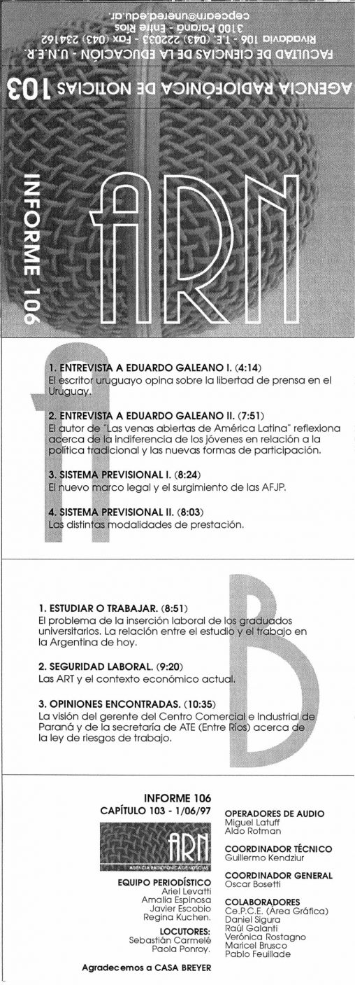 Entrevista a Eduardo Galeano I Entrevista a Eduardo Galeano II Sistema previsional I Sistema previsional II Estudiar o trabajar Seguridad laboral Opiniones encontradas