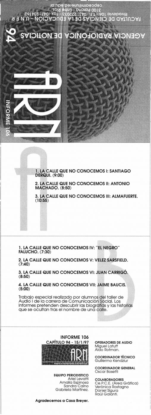 La calle que no conocemos I: Santiago Derqui La calle que no conocemos II: Antonio Machado La calle que no conocemos III: Almafuerte La calle que no conocemos…