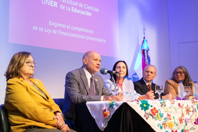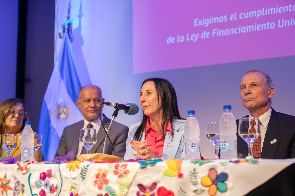 En otro tramo de su discurso, lamentó que “el sistema público universitario y el sistema científico tecnológico argentinos están pasando el peor de los ajustes y el peor de los momentos desde el regreso de la democracia”. En ese sentido, señaló con preocupación que “de cada dos salarios y medio que están cobrando nuestros trabajadores, están perdiendo uno”, así como “nuestros estudiantes han perdido el 80% del valor adquisitivo de sus becas”, debido a que “hace 180 días que este Gobierno incumple la Ley de Financiamiento Universitario”.
