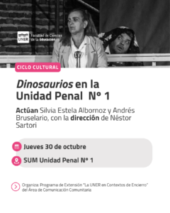 El jueves 30 de octubre, el SUM de la Unidad Penal N°1 Juan José O’Connor se transformará una vez más en el escenario del Ciclo Cultural organizado por el Programa de Extensión La UNER en contextos de encierro del Área de Comunicación Comunitaria (FCEDU – UNER). Este Ciclo propone propiciar la reflexión y el disfrute compartido de diversas expresiones artísticas, procurando ampliar el acceso a la educación, a la comunicación y a la cultura de las personas privadas de la libertad.