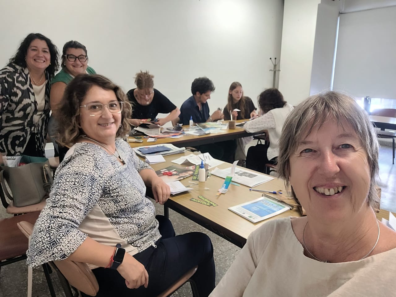Asimismo, el grupo de estudiantes integrado por Anahí Sacco, Valentina Manni, Santiago Salva y Josefina Milocco, participaron de los talleres de Activismo (historio)gráfico, a cargo de Gabriela Cruder. El equipo docente también asistió al taller Los Archivos universitarios en clave de Memoria, Verdad y Justicia, a cargo de Sonia Riveros, Samantha Casaretto y Laura Casaretto.