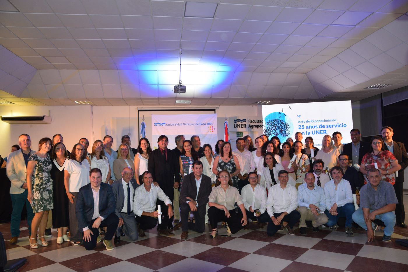 Docentes y nodocentes que cumplieron 25 años de servicio en la Universidad Nacional de Entre Ríos fueron homenajeados el pasado 20 de noviembre. Palabras alusivas, recuerdos de sus trayectorias y un cierre artístico a cargo del ballet folclórico dieron marco a una jornada dedicada a reconocer su trabajo en la institución.
