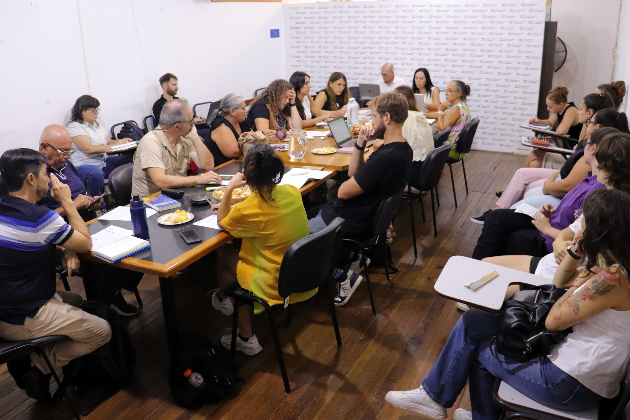 Participaron de la reunión la decana, Aixa Boeykens; el vicedecano en funciones de secretario de Investigación y Posgrado, Carlos Marín; el secretario General, Ignacio González Lowy; las secretarias Académica, Milagros Rafaghelli, y de Extensión y Cultura, Karina Arach Minella; el secretario Económico Financiero, Rodrigo Ceballos; las y los representantes docentes Leonardo Caudana, Daniela Godoy, Valeria Olivetti, Fernando Fava, Bárbara Correa, Romina Gallo, Martín Maldonado, Gretel Ramírez y Mariano Hadad; Soledad Ramírez, Anahí Stahringer y Sofía Taborda por el claustro estudiantil; María Agustina Panelli por el claustro de personas graduadas; y por el personal nodocente, Silvina Cabrol. También estuvieron presentes las coordinadoras de Carreras de Ciencias de la Educación, Candela San Román, y de Comunicación Social, Cecilia Volken; la directora Académica, Alejandra Cerutti, y la secretaria de Consejo Directivo, Mariana Cappa; el consejero superior estudiantil Genaro Arijón; la presidenta del Centro de Estudiantes, Josefina Milocco; entre otras y otros integrantes de la comunidad académica de la FCEDU.