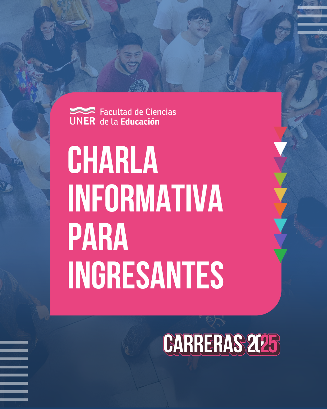En este encuentro se presentarán las carreras de la FCEDU y se responderán consultas relacionadas a las inscripciones y condiciones de ingreso.