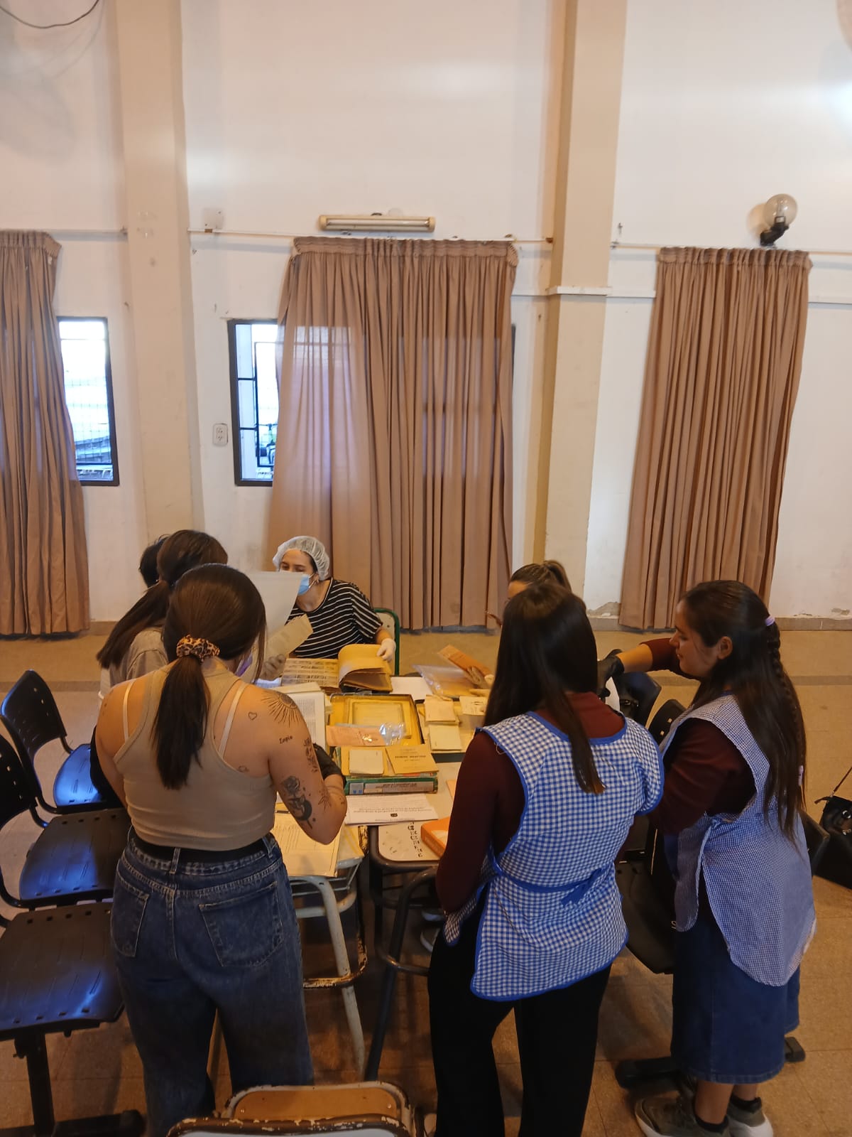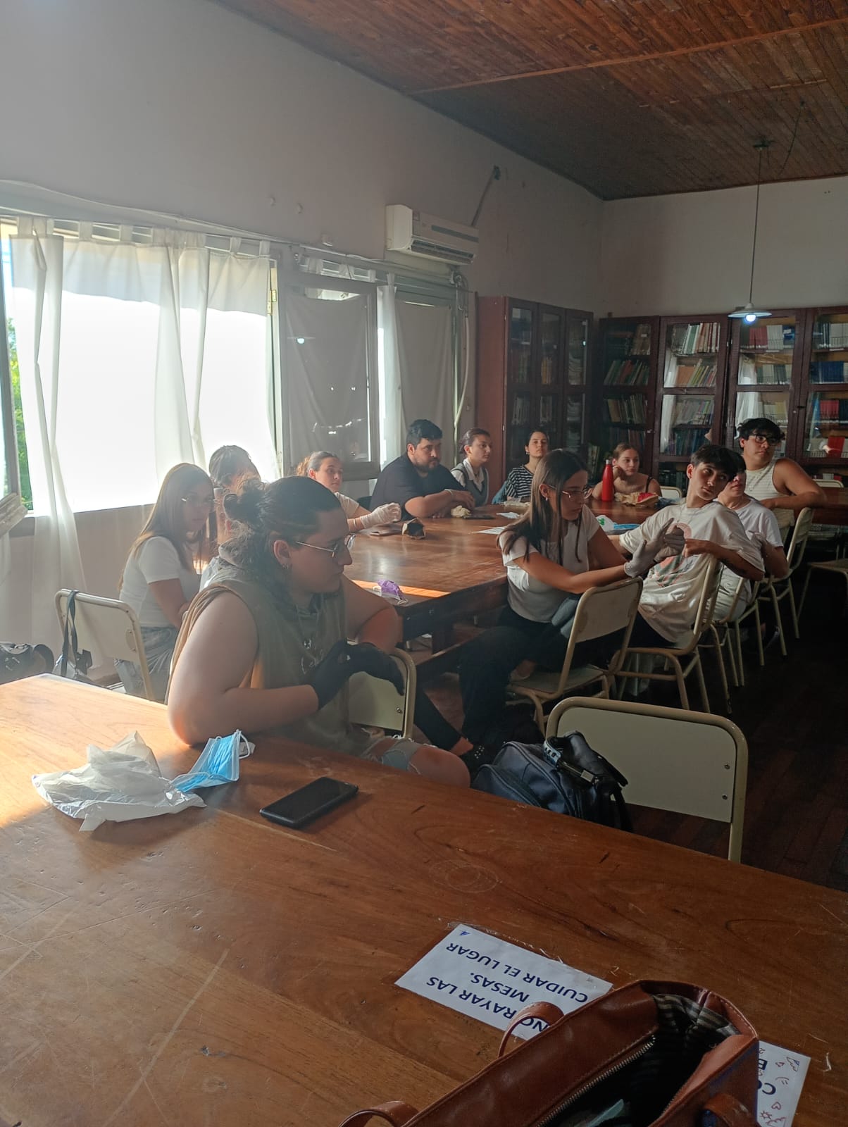 El pasado miércoles 5 de noviembre se realizó un encuentro de trabajo colectivo y cooperativo que puso el foco en el acervo documental de la Escuela Normal Superior Martiniano Leguizamón de la ciudad de Villaguay. En esta instancia participaron 15 estudiantes y un graduado de la carrera de Ciencias de la Educación; estudiantes, docentes y la bibliotecaria de la Escuela Normal Superior Martiniano Leguizamón, y el equipo docente extensionista, conformado por Janet Cian, María Inés Monzón, Ayelén Putero y Mariana Saint Paul.
