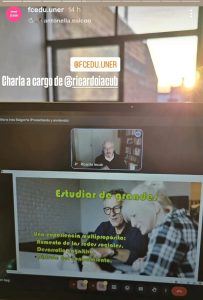 La actividad se realizó de manera virtual y participaron más de 40 personas, entre ellas la Decana de la FCEDU, la doctora Aixa Boeykens quien brindó palabras de bienvenida, la coordinadora del DMyTE Valeria Olivetti, entre otras y otros integrantes del equipo de trabajo.