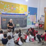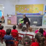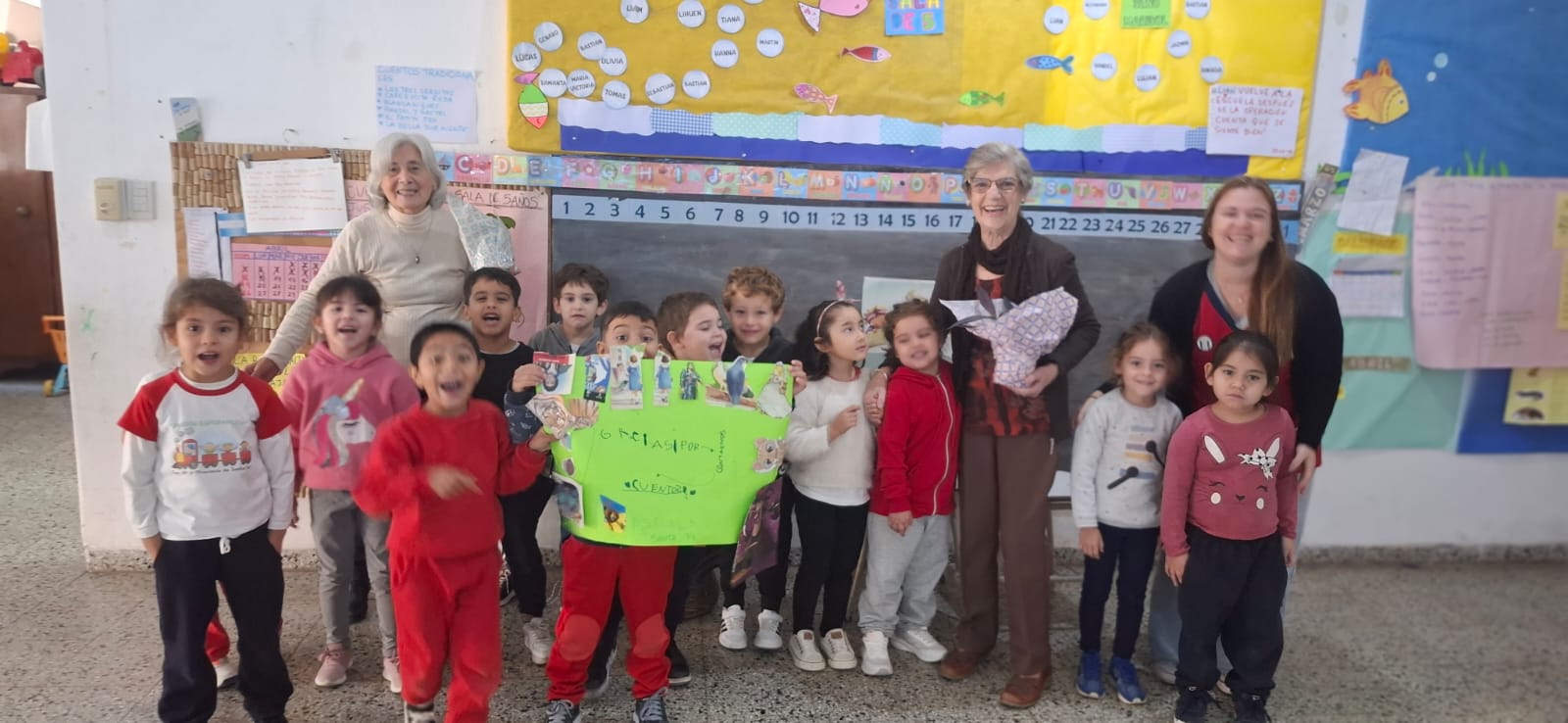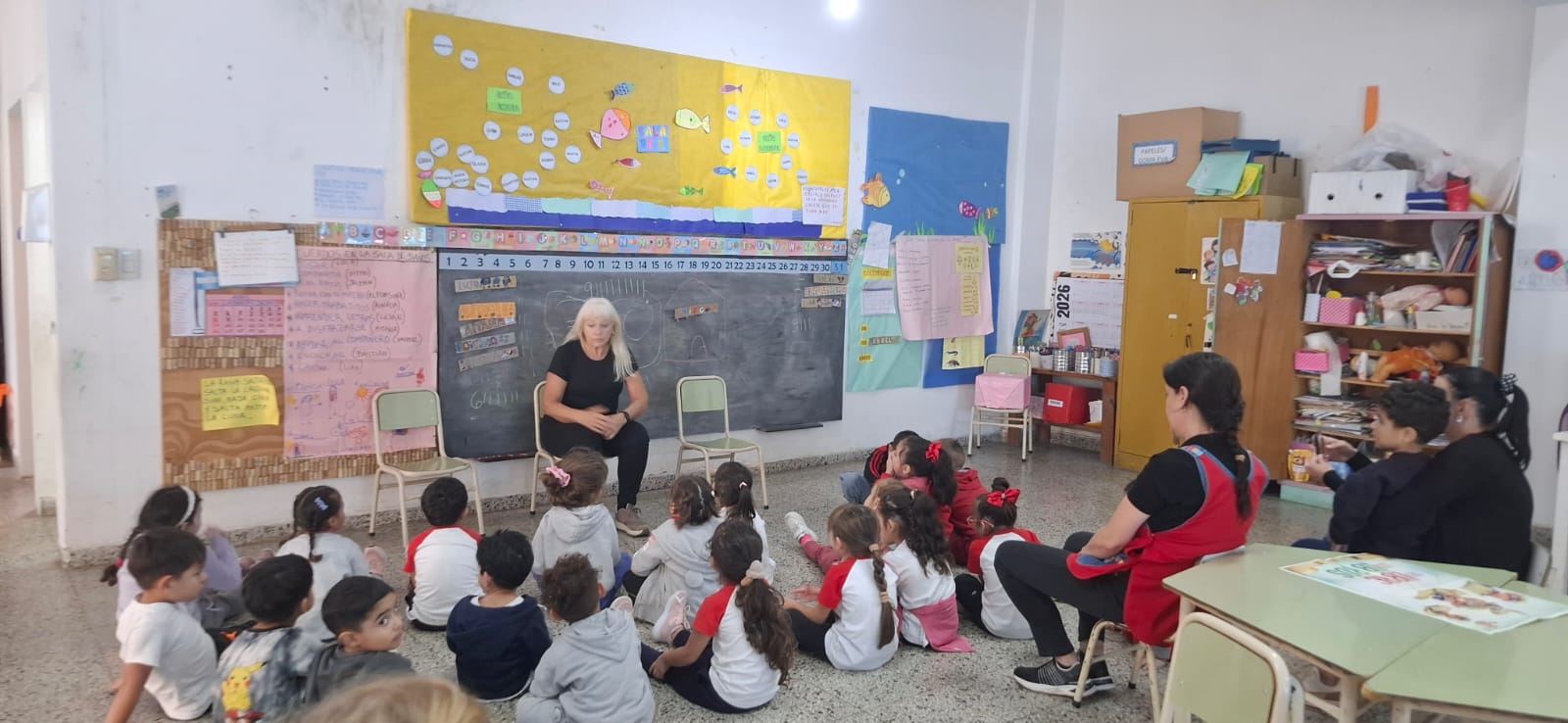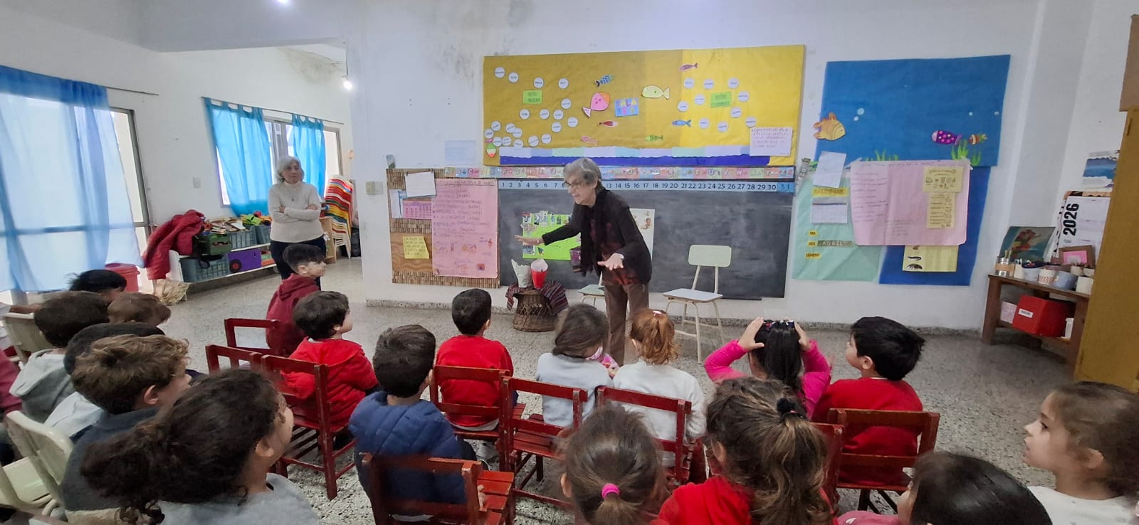 Sin embargo, esta no fue la única actividad a la que asistieron en el día. Durante la jornada matutina, las mismas narradoras visitaron la Escuela Primaria N°11 Provincia de Santa Fe, donde se encontraron con un público infantil. Allí ofrecieron, como ellas mismas dicen, “un pedacito de su alma” a través de sus relatos, y recibieron a cambio el cariño de los niños, expresado en cartas de agradecimiento.