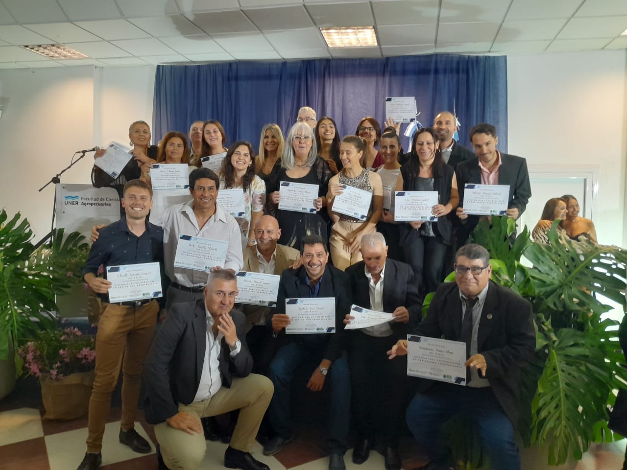 La decana participó del acto en Oro Verde. La propuesta formativa se dictó en conjunto entre la FCEDU, la Facultad de Ciencias Agropecuarias de la UNER y la Asociación Entrerriana de Periodismo Agropecuario.