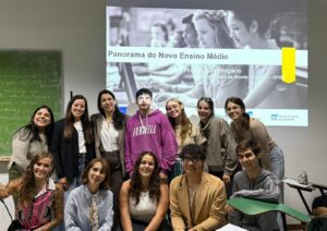 Durante el encuentro, compartió su trayectoria de formación y trabajo, y se detuvo en las particularidades del sistema educativo brasileño, sus regulaciones y la organización curricular. En ese marco, puso énfasis en el nivel secundario, en diálogo con los contenidos de la cátedra, que abordan este nivel tanto en la enseñanza como en la investigación.