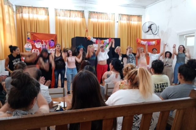 Mediante las interpretaciones, las protagonistas lograron crear un ambiente distinto, donde el humor se volvió protagonista. Las escenas estaban llenas de situaciones reales y otras disparatadas y de personajes que les/nos permitieron, por un rato, salir de lo cotidiano. Al igual que durante los talleres semanales, se convirtió en esa posibilidad de ser también otras: conductoras de radio, deportistas, niñas que juegan, mujeres que se ríen. Un respiro necesario, un momento de alegría compartida que nos recordó a las presentes que siempre se pueden generar tiempos y espacios para un poco de aire y diversión, incluso en los días más pesados.